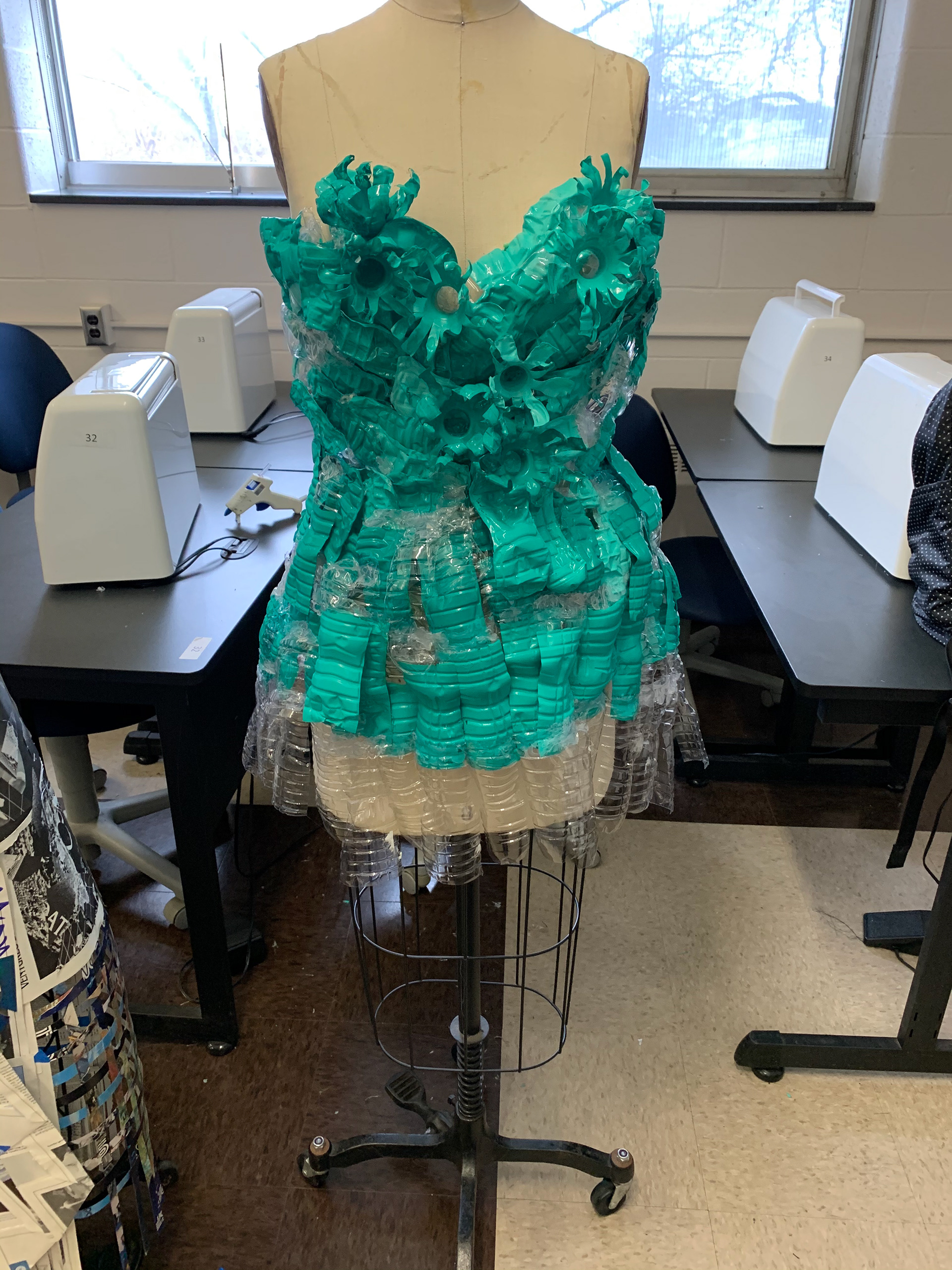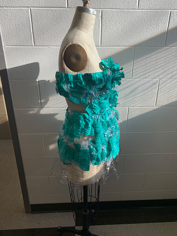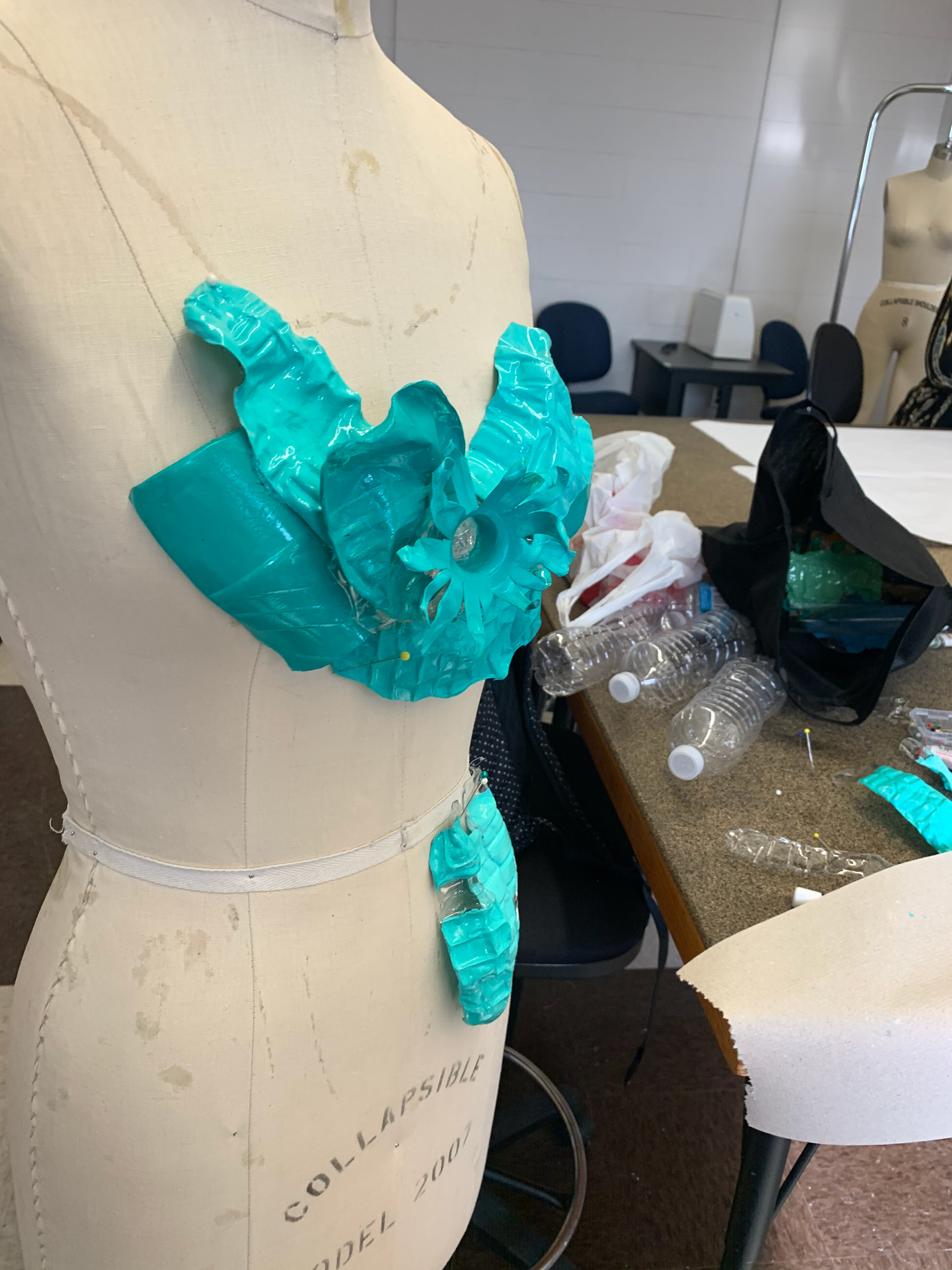 This piece was done as an unconventional materials project, I used acrylic paint, plastic bottles, acrylic sealer, and a lighter to burn the edges to create form and textures.